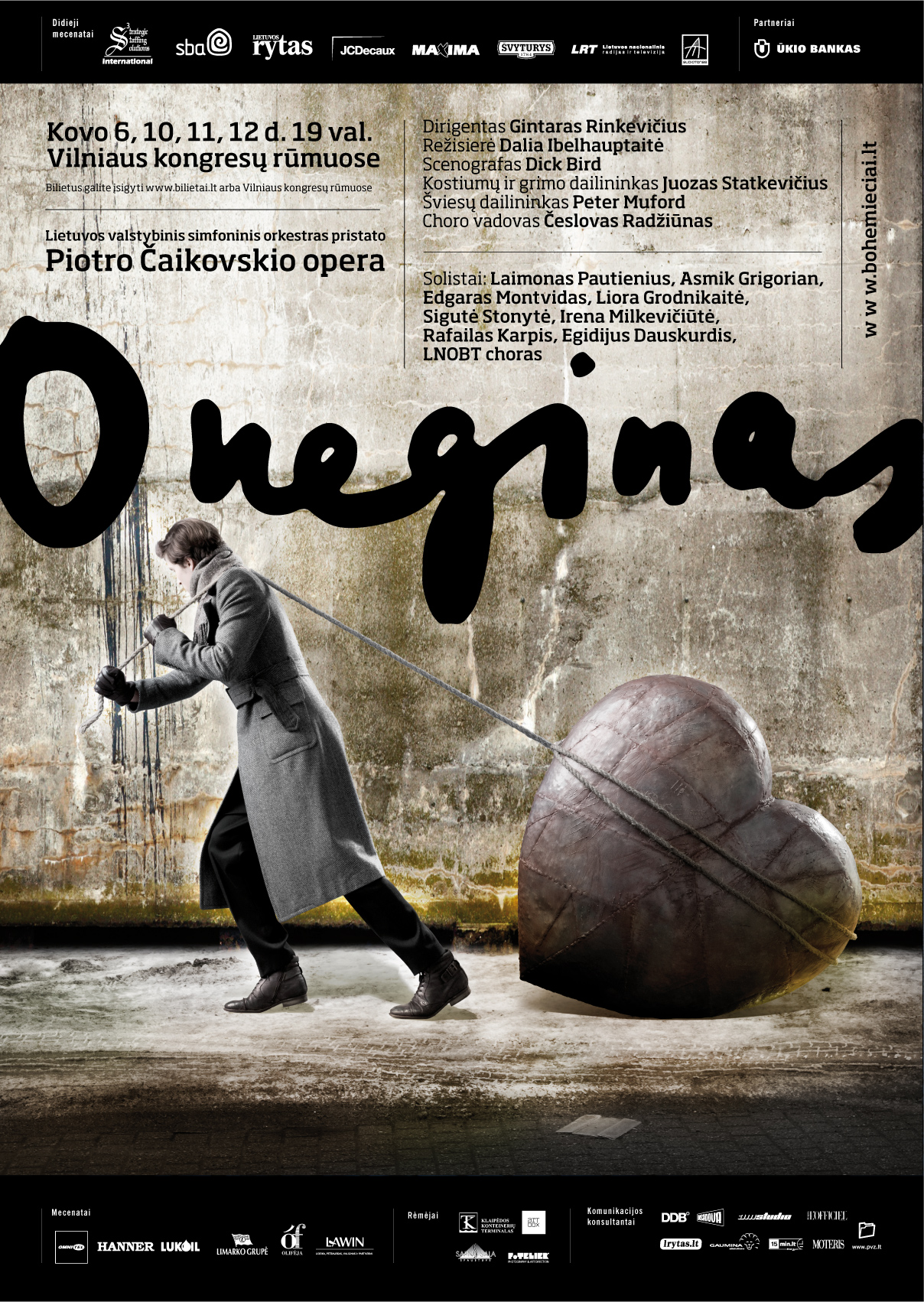 Viena ryškiausių VCO interpretacijų – spektaklis „Oneginas“ pagal Aleksandro Puškino ir Piotro Čaikovskio šedevrą. Čia veiksmas iš XIX a. pradžios persikelia į praėjusio amžiaus pabaigą – 1970-ųjų sovietinę Rusijos provinciją ir 1980-ųjų modernų Niujorko pasaulį. Vadinamoji „komunalkė“ – Lietuvai labai suprantama ir gerai prisimenama vieta bei atmosfera. Gyva ji ne tik atsiminimuose: pastatymo metu ieškant rekvizito ir kostiumų, daug autentiškų daiktų scenografo asistentai surinko iš visos Lietuvos, o tarybines krepšininkų glaudes, sportinius marškinėlius, krimplinines sukneles ir kitus rūbus, paskelbus paiešką, maišais sunešė Vilniaus gyventojai.